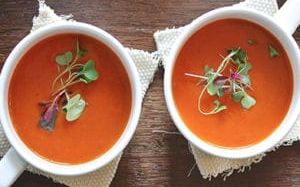 - To make the toasts, rub both sides of bread with the garlic and grill on one side until golden. Turn over the toast, sprinkle with Edam and grill until bubbling. Serve immediately with the soup.